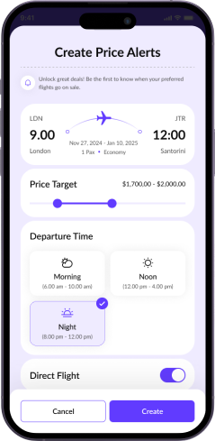 Choose your destination, select flights, and book effortlessly with just a few taps.